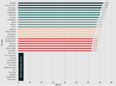 In 2019, Citieslab conducted a Sukabumi Livable City Index (LCI) research for Sukabumi City Government. The approach and method adapted form IAP Most Livable City Index that livability can be measured by citizen perception. Sukabumi LCI surveyed 33 Urban Villages (Kelurahan) in 7 Sub-Districts. The survey resulted that the average livability index of Sukabumi was 65 of 100, which indicates that there were still 35% of citizens who feel uncomfortable living in their cities. The survey resulted that Cikole sub-district had the highest index, and Baros sub-district had the lowest index in Sukabumi. The study also found what aspects were satisfying and unsatisfying according to citizens in each Urban Villages. The study used as inputs for government and other stakeholders to provide the citizen’s needs.